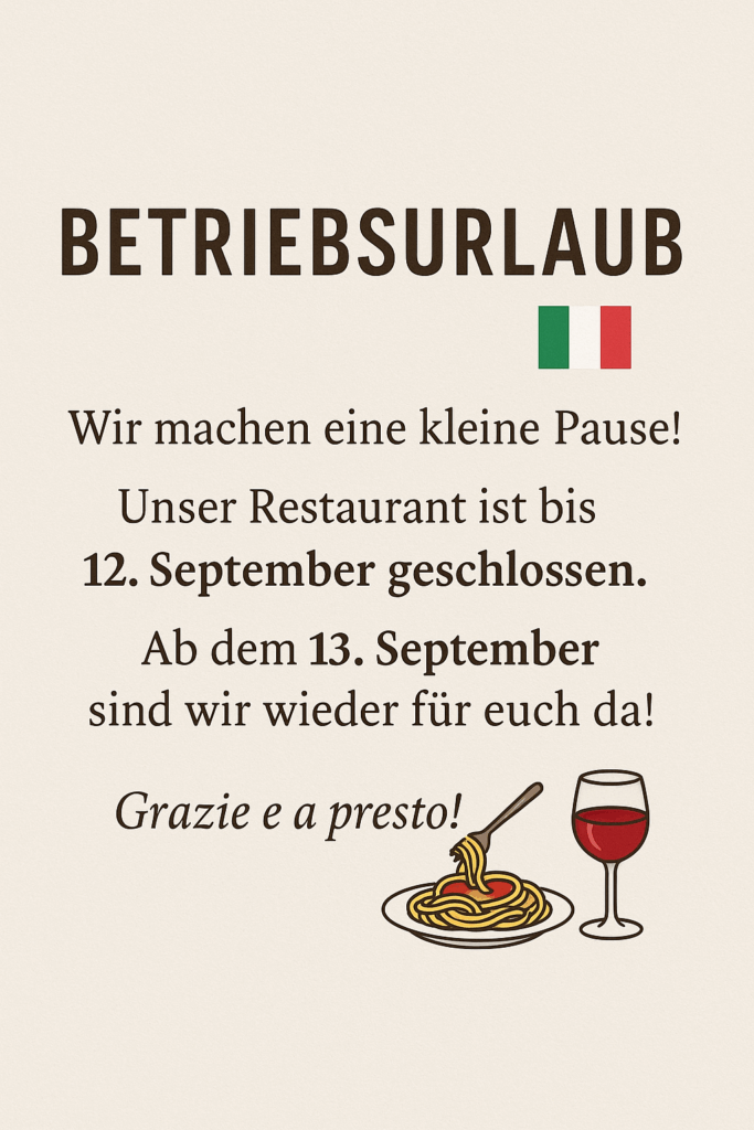 Betriebsurlaub bis 12.09.2025